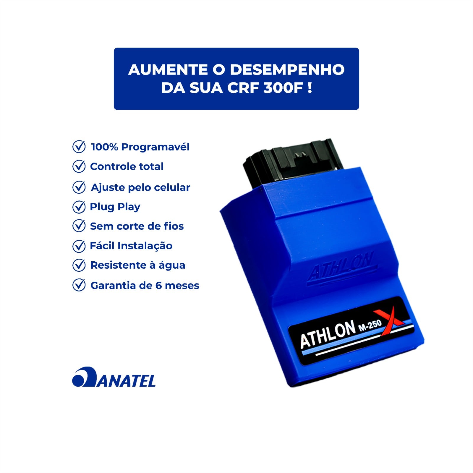 Compatível atualmente com Honda CRF300F com conector de 48 pinos. Instalação plug & play, sem cortes de fios e pronta para uso.